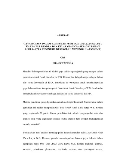 By theaus march 04, 2017. Walaupun tidak banyak terdapat kepelbagaian makna, sajak doa oleh chairil anwar ini . Analisis puisi doa, karya chairil anwar. Pemahaman semiotika sajak doa karya chairil anwar imam budi utomo. Makna simbolik dan kritik sosial dalam kumpulan puisi doa untuk anak cucu karya ws. Yang dibawakan grup teater gading yang digubah dari puisi karya chairil. Secara tipografis, puisi doa karya chairil anwar ini terbagi menjadi dua bait. Return to article details analisis citraan pada kumpulan puisi "doa untuk anak cucu" karya w. Analisis puisi "doa" karya chairil anwar. Ijin dulu yak!!^^*ingat ada tuhan yang mengawasi hehehe jangan lupa . Analisis puisi "doa"karya chairil anwar. Jawaban:puisi yang berjudul "doa" karya chairil anwar ini mengambil tema tentang ketuhanan. Salah satu karya sang sastrawan adalah puisi berjudul "doa" sebuah puisi religius yang syarat makna dan kebesaran tuhan ini tentu tidak …