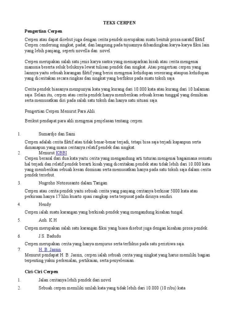 Pembagian cerpen menjadi tiga diatas berdasarkan jumlah kata nya, nah untuk selanjutnya cerpen berdasarkan teknik mengarangnya dapat dibagi menjadi dua jenis apakah itu yuk kita. cerpen yang berjudul sepenuhnya karena dia anakku hanya terdiri atas 5 halaman, 80 baris, spasi 1,5. Berikut ini adalah kumpulan cerpen remaja tentang berbagai aspek kehidupan anak muda seperti percintaan dan persahabatan. Contoh cerpen yang panjang adalah nyali karya putu wijaya. Cerita pendek panjangnya antara 2500 hingga 5000 patah perkataan.